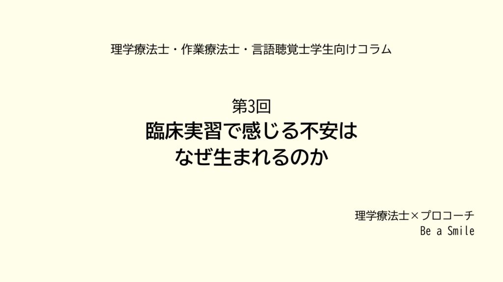 今回から、臨床実習で感じやすい不安や迷いについて、全5回のシリーズで、私の体験談も入れながら、少しずつ整理していきます。 臨床実習で、不安になったことはありませ…