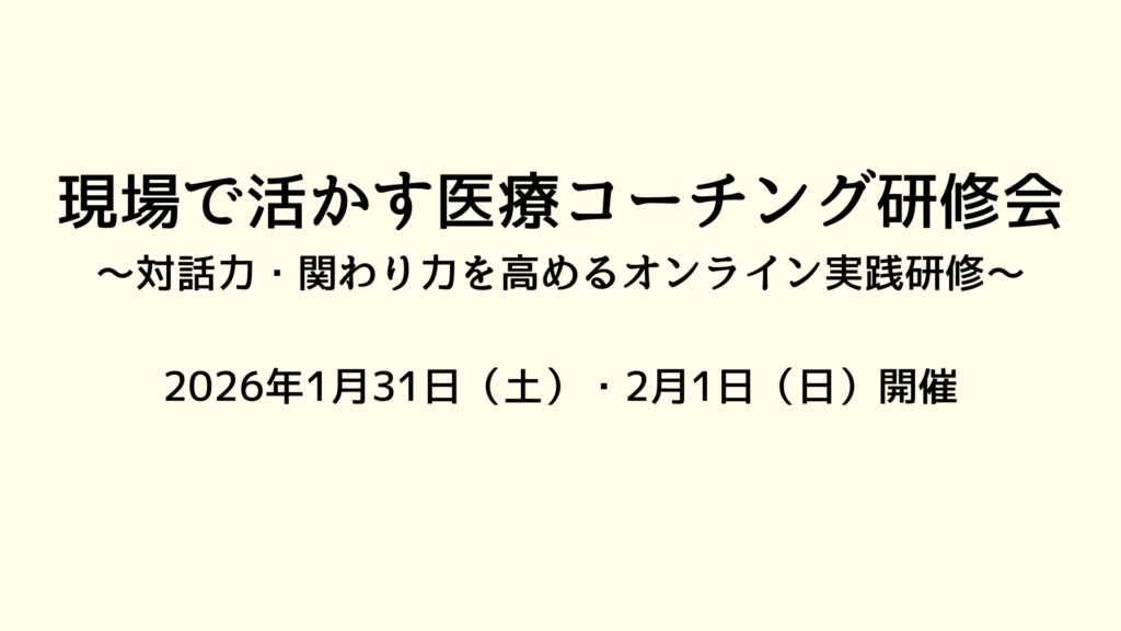 現場で活かす医療コーチング研修会|対話力・関わり力を高めるオンライン実践研修(1月31日~2月1日)