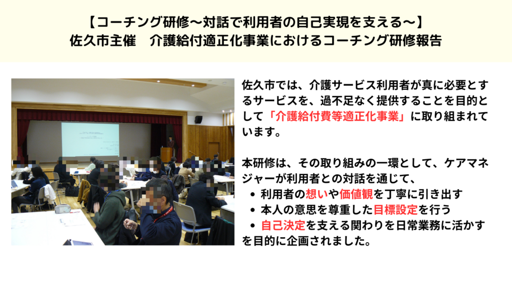 【佐久市主催】介護給付適正化事業におけるコーチング研修報告