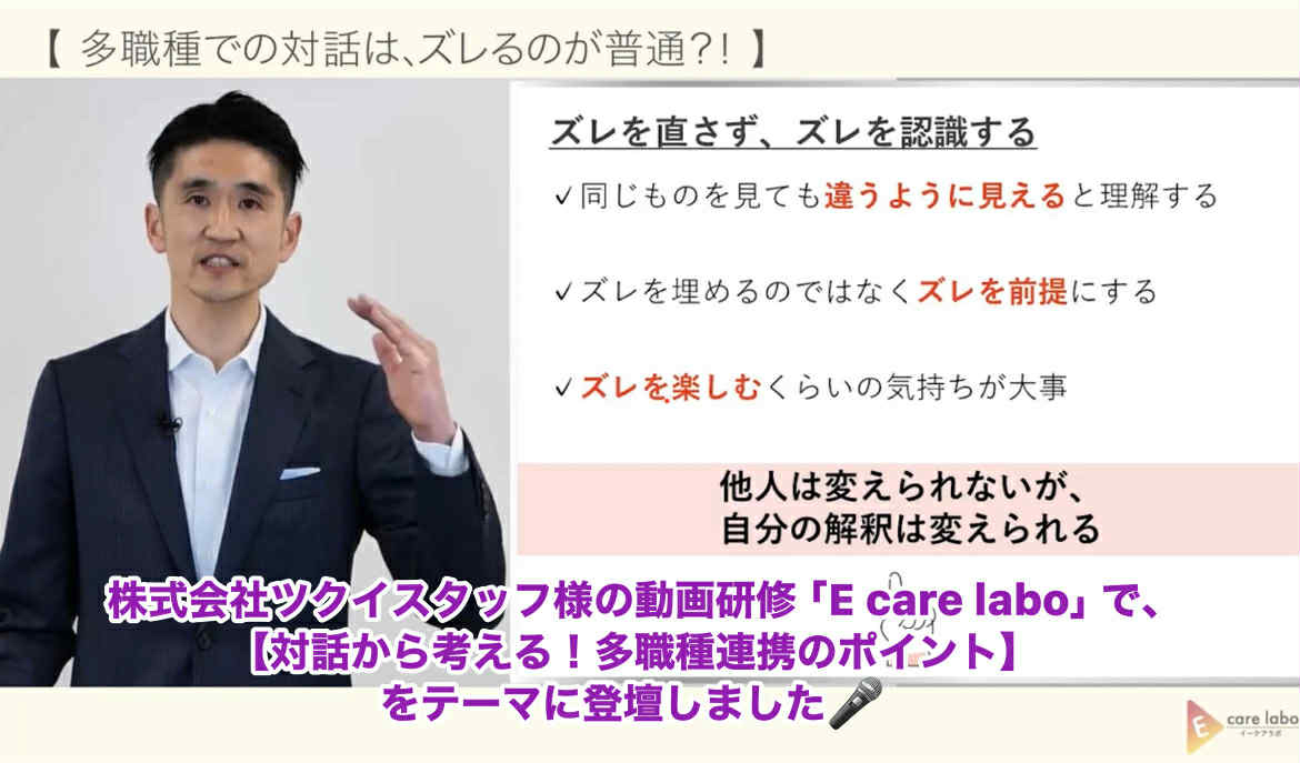 介護 #多職種連携 #チームケア #コミュニケーション #Ecarelabo #ツクイスタッフ #動画研修 #研修講師 #対話