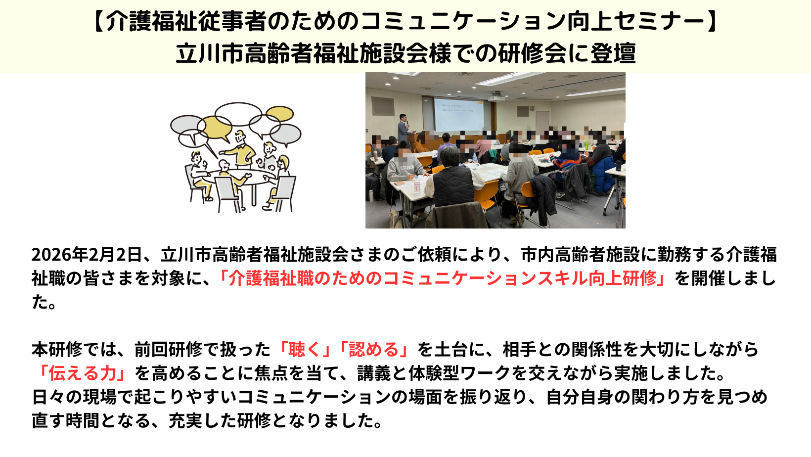 【立川市高齢者福祉施設会主催】介護福祉職のためのコミュニケーションスキル向上研修報告